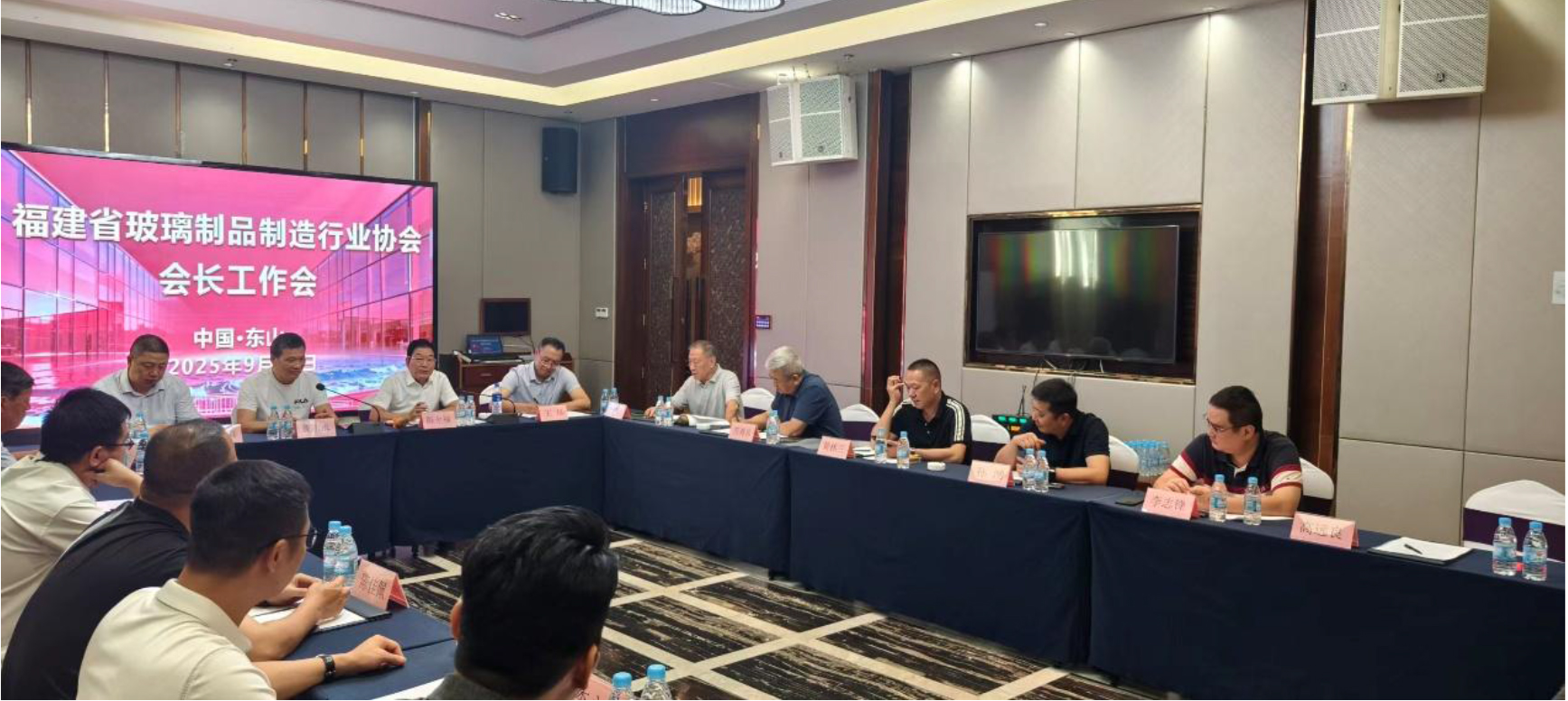 2025年9月26日,会长工作会在漳州东山华福酒店召开。协会副会长、监事长等参加会议,漳州旗滨玻璃有限公司总经理姚新喜、漳州旗滨玻璃节能有限公司王烁总经理等人应邀参加会议。
